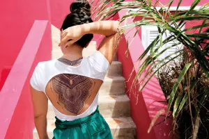 Exploring the beautiful murals in the artsy neighborhood Scharloo? Drop by at Curaçao’s 1st & top Henna artist in her colorful boutique called Nigrita. At Bargestraat 28 you’ll find Nicolle Lourens working wonders by turning her client’s skin into creative displays of temporary tattoos using natural henna or fruit based Jagua gel. These tattoos can last from a few days to a couple of weeks. She is also a tattoo artist in fine line permanent tattoos. So, if you want a unique Henna inspired tattoo design Nicolle will create it for you. She is a favorite among locals and visitors, not only for her tattoos but also for hosting artsy henna high tea parties, cozy waist bead workshops and her collection of colorful driftwood art pieces. Nicolle believes that through her art she can create Joy, beauty, and confidence in the life of others.