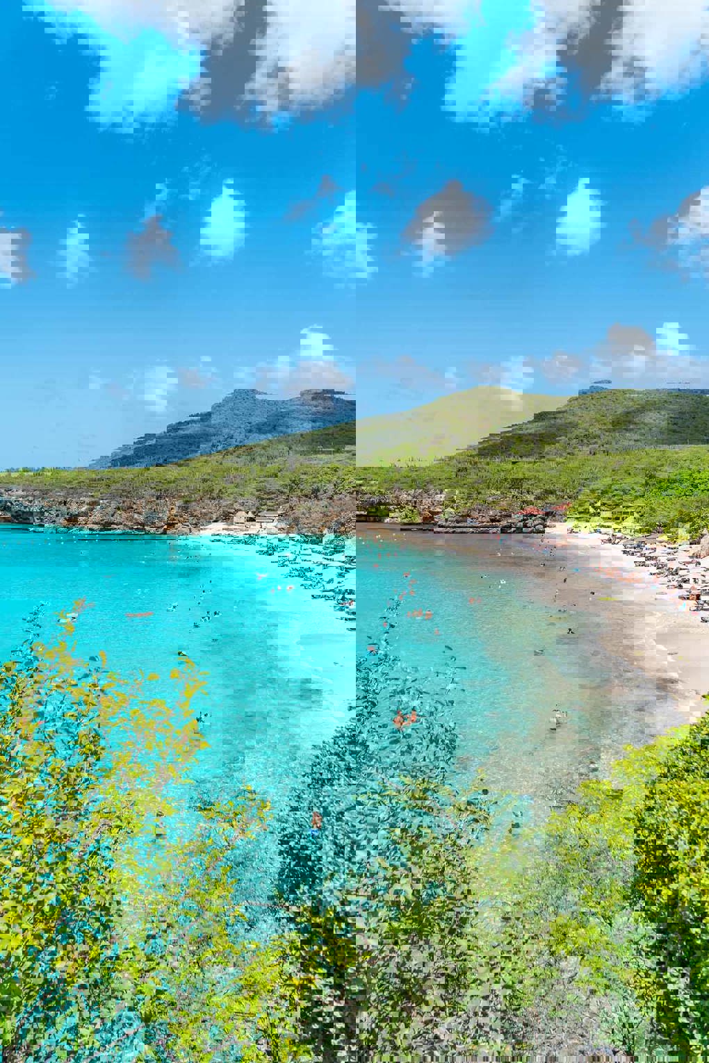 Visit one of Curacao's most beautiful beaches: Grote Knip, also known as Kenepa Grandi. Located on the island's rugged west coast, this popular beach offers breathtaking views, clear turquoise waters and a wide bay surrounded by high rocks. It is an ideal spot for sunbathing, swimming and snorkeling. Despite its fame, the beach rarely feels crowded thanks to its spacious layout.