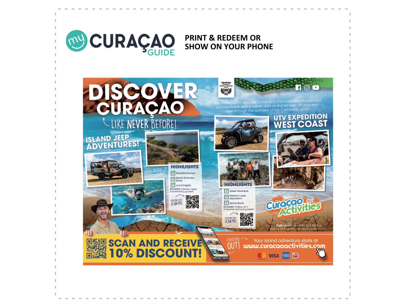 Reserva en línea y obtén un 10% de descuento en tu reserva de Curazao Activities.