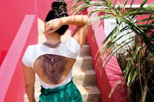 De prachtige muurschilderingen in de kunstzinnige wijk Scharloo aan het verkennen? Ga langs bij Curacao’s 1e & top Henna artiest in haar kleurrijke boetiek genaamd Nigrita. In de Bargestraat 28 verricht Nicolle Lourens wonderen door de huid van haar klanten om te toveren in creatieve tijdelijke tatoeages met natuurlijke henna of Jagua gel op fruitbasis. Deze tatoeages kunnen een paar dagen tot een paar weken blijven zitten. Ze is ook een tatoeëerder in fijne lijn permanente tatoeages. Dus, als je een uniek Henna geïnspireerd tattoo ontwerp wilt dan zal Nicolle het voor je maken. Ze is een favoriet onder de lokale bevolking en bezoekers, niet alleen voor haar tatoeages maar maar ook voor haar kunstzinnige henna high tea parties, gezellige taille kralen workshops en haar collectie kleurrijke drijfhout kunstwerken. Nicolle gelooft dat ze door haar kunst vreugde, schoonheid en vertrouwen kan creëren