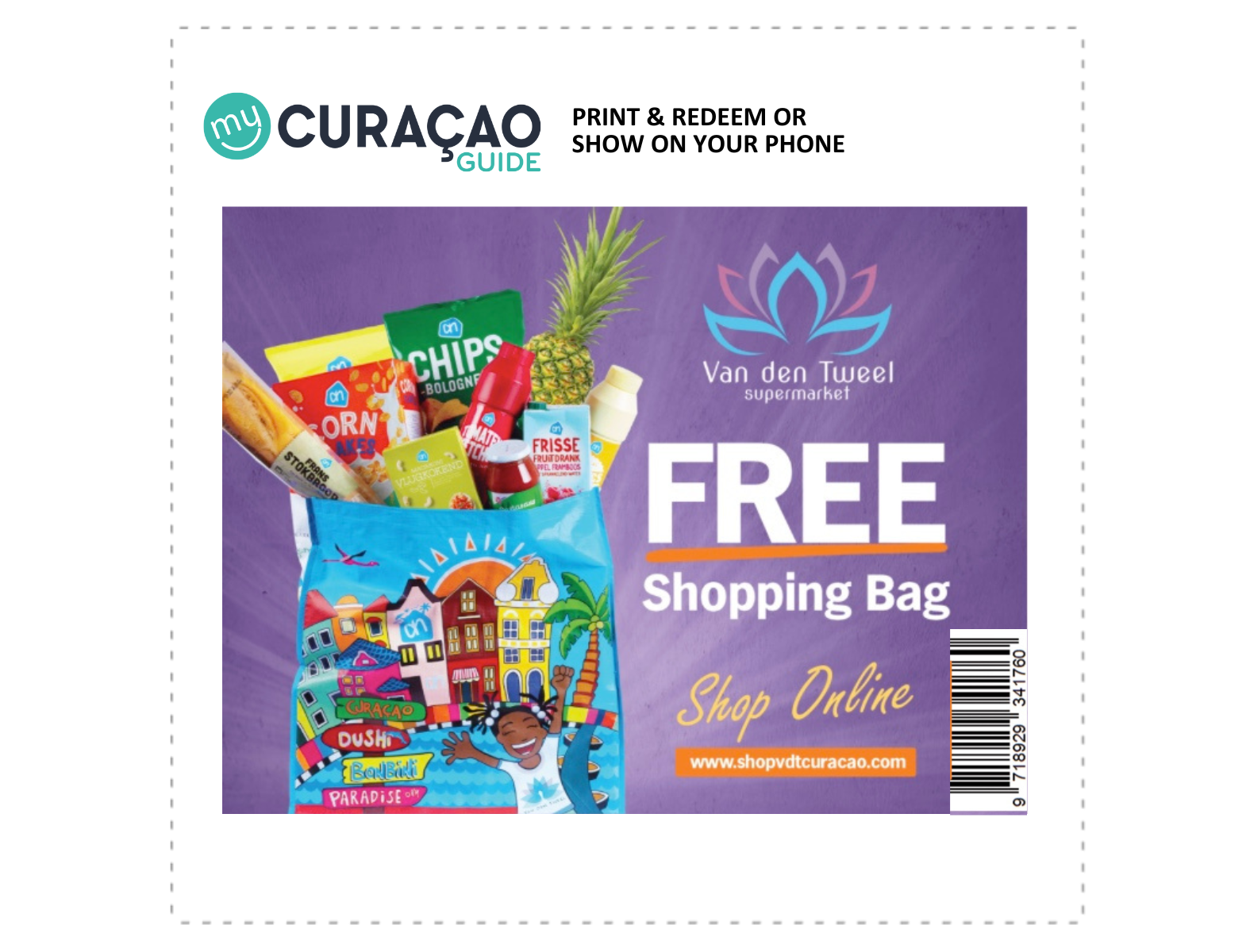 Gaste mais de ANG 50 e ganhe uma sacola de compras grátis com sua compra ao apresentar este cupom no caixa.